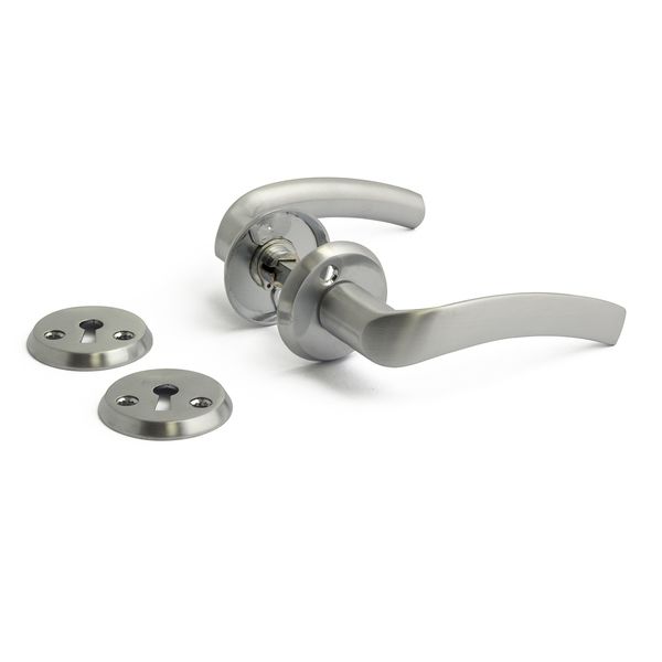 Dørhåndtak inkludert nøkkelskilt i sink. Overflatebehandling børstet krom. Passer WC-beslag A262.