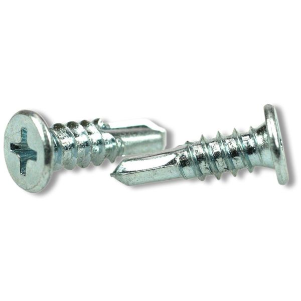 Monteringsskrue for sammenfuging av tynne metallbjelker. Egnet for montering der det kreves ekstremt lav bygghøyde på hodet. Annet: Lavt rundt hode. Skallhøyde 1 mm. Plateskrue med borspiss for stål 1,5 + 1,5 mm.