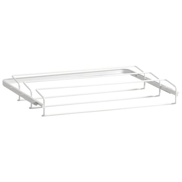 Uttrekkbart skohylle for oppbevaring av sko med hæler. Skaper god oversikt og tilgjengelighet. Ingen verktøy er nødvendig for montering. Skostativet klikkes enkelt på plass mellom to Elfa Console click-in D:40.