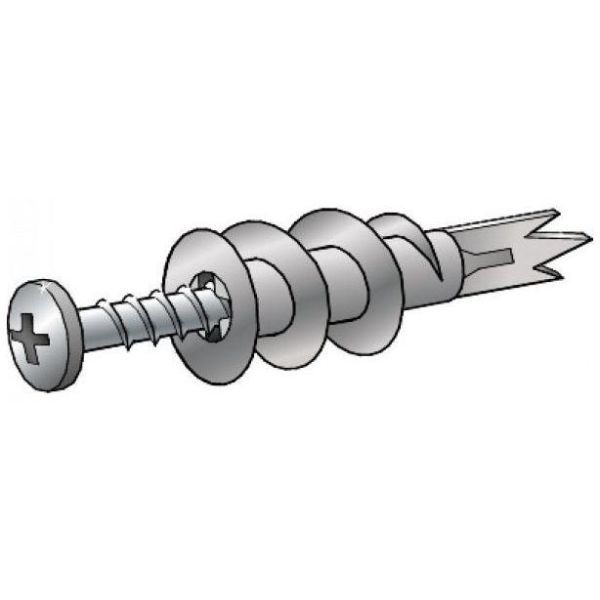 Art.nr: 1530679En 100-pakning gipsankere 4,5x50 mm med selvborende innfesting. Beregnet for rask og sikker montering i gipsplater, samt elementvegger av gips og polyuretan.