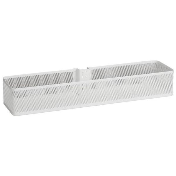 Mesh kurv for oppbevaring av mindre gjenstander i mindre mellomrom som baksiden av en dør. Kurven monteres enkelt uten verktøy, bare hekt på skinnen. Kombiner med topp- og bunnbrakett og veggskinne for oppbevaring på døren.