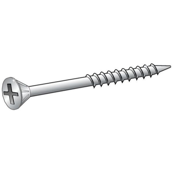 1000-pakning sponplateskrue, 4,2x30 mm, Philips krysspor Ph2. Beregnet for montering av spon-, board-, plywood- eller gulvsponplater innendørs, mot trestendere. Skruen er produsert av herdet stål med en blankgalvanisert overflatebehandling. Hodet har fire skjærende riller som forsenker skruen og etterlater en slett overflate uten fliser.