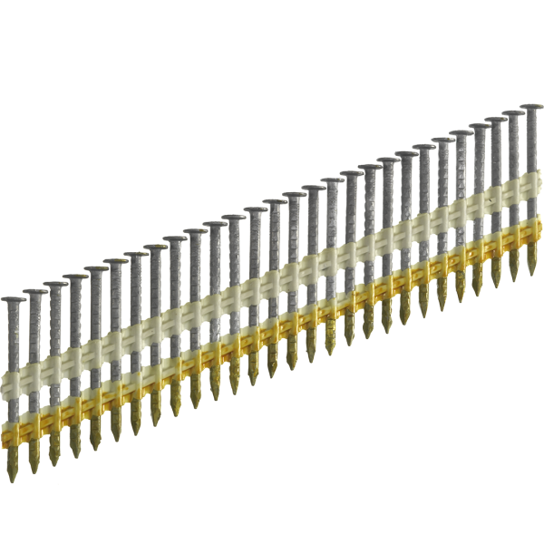 Art.nr: 4012300Rakbåndet stavspiker med 21° vinkel, Sencote-lim, rillet stamme og helrund hode. Spikeren er varmforzinket, noe som gjør den godt egnet til utendørs bruk, for eksempel kledning- og panelspikring.