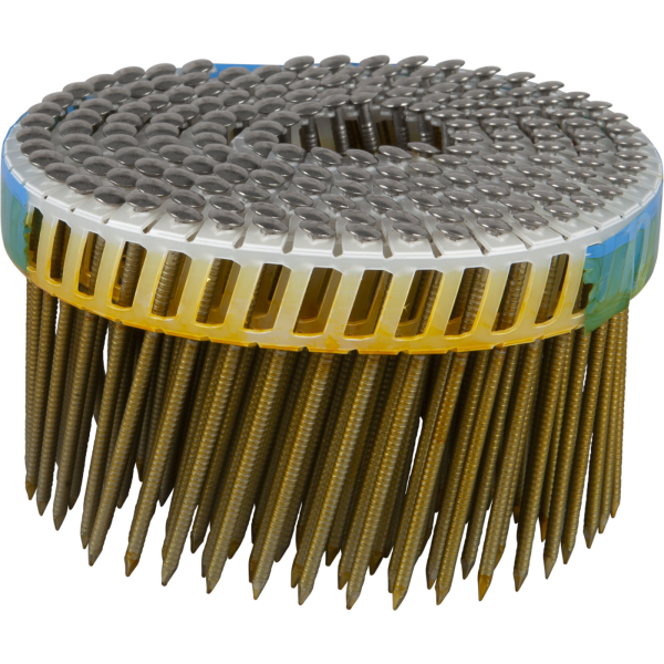 Plastbåndet maskinspiker, 15°, med kulehode. Passer til alle standardverktøy for 15° plastbåndet spiker. For min./maks. lengde, se produktbladet for hver maskin.