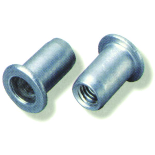 Flatt hode med åpen ende – type FTT A2. Bortsett fra enkel og rask applikasjon gir blindnaglemutter en sterk muttergjenge i tynne materialer i rustfritt stål. Mutteren monteres blindt fra én side med hånd- eller kraftverktøy, noe som gjør den perfekt å bruke i lukkede profiler, rør osv. Hulldimensjoner i jevne metriske mål forenkler hulltaking.