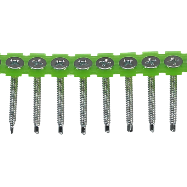 ESSVE gipsskrue på Ø3,5 mm som har borspiss og er beregnet på montering av gipsplater innendørs, mot stålbjelke. Skruen er rettbåndet og produsert i herdet stål med blankforsinket overflatebehandling. Har en borekapasitet på 0,7-2,0 mm og er utstyrt med Philips krysspor PH2. ESSVE gipsskrue med borspiss passer til de vanligst forekommende skrueautomatene på markedet. Leveres i 1000-pakning.