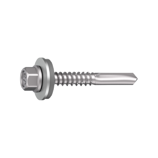 Ejot JT3-6 er en borrende og gjengepressende skrue for utvendig montering av bygningsplater mot ulike typer underlag. SUPER-SAPHIR er unik med sin borekjerne av herdet stål, homogent forbundet med skruekroppen i rustfritt stål. Dette gjør det mulig å kombinere kravene til rustfritt materiale for utendørs bruk og rask, effektiv montering uten forboring. Utførelse: Sekskanthode med flens. Leddet skive (Ø16 mm) med tetning av EPDM-gummi. Øvrig: Anbefalt turtall ca. 1600 o/min.