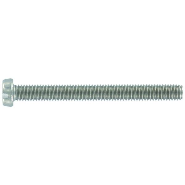 M-gjenge. Sporskrue med sylindrisk hode i henhold til DIN 84 A (ISO 1207). Helgjenget.