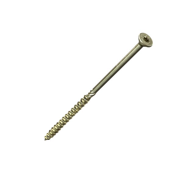 Rapid- En spesialherdet skrue som forener rask montering med overlegen styrke. Treskrue med forsenket hode kombinert med innvendig T-driving. Spesialgjenge med integrert skjærskår og spiss med 30 graders geometri minimerer sprekkdannelse, øker uttrekksverdi og gir en raskere innskruing. Fresevinger under hodet garanterer en optimal forsenkning og er myk og snill mot materialet. Stamfresen freser et frigangshull, spesielt viktig for grovere dimensjoner for å forenkle sammenpressing av virkedeler. Materiale: Seigherdet karbonstål 10,9 (strekkfasthet 1000-1400 N/mm2). Overflatebehandling: Gulkromatisert sink 5 my, korrosivitetsklasse C2 (innendørsbruk). Bruksområde: Sammenfuging og innfesting av trekonstruksjoner. Trenger ikke å forhåndsbores.