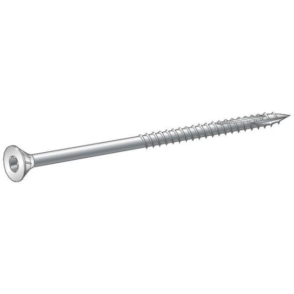 100-pakning treskrue, 6,0x100 mm. TX30-feste/-bits. Passer for montering i sponplater, tre, plast m.m. Produsert av herdet stål med en blankgalvanisert overflatebehandling. To fiberskjær for et svært lavt innskruingsmoment i hardere trematerialer, som minimerer sprekkdannelse og gir en slett overflate uten fliser.