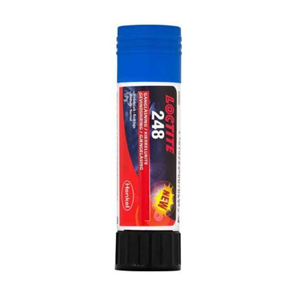 Loctite® 248 er et universalt gjengelåsemiddel med middels sterk bindekraft. Dette produktet er tilgjengelig i et praktisk stiftformat. Dette gjengelåsemiddelet låser og tetter skruer, muttere og bolter for å hindre at de løsner pga. vibrasjoner. Produktet fungerer på alle metaller, inkludert passive underlag, slik som f.eks. rustfritt stål, aluminium og belagte overflater. Det er bevist at produktet tåler lett forurensning fra industrioljer, slik som f.eks. motoroljer, rustforebyggende oljer og skjærevæsker.
