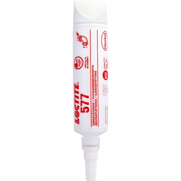Loctite® 577 er utformet for låsing og tetting av metallrør og rørdeler i tillegg til andre gjengede montasjer. Produktet gir hurtig tetting mot lavt trykk til metallrør og tilbehør. Produktet vil ikke sige, krympe eller fragmentere. Produktet har meget god kjemisk og termisk motstandsdyktighet, og gir redusert migrering av flytende produkt etter påføring.