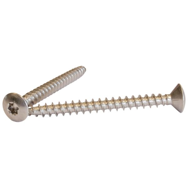VVS-skrue med linsehode for pene monteringer. TX-spor. Egnet til montering av toalettstoler, vaskevannsfat og annen baderomsinnredning. For montering i tre eller plugg.