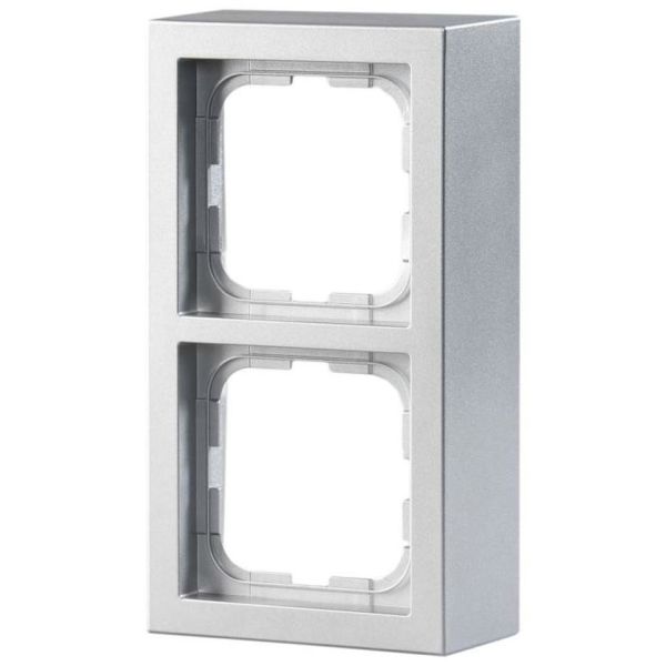 Forhøyningsrammer for 1-veis midtplater, f.eks. strømstiller, datauttak osv. Montering kan skje både loddrett og vannrett, brukes sammen med veggboks 26 mm. Antall apparatbokser er likt med antall rom på forhøyningsrammen.
