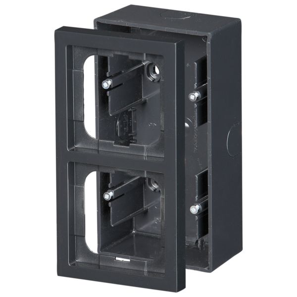 Art.nr: 3023319Dype forhøyningsrammer for 1-veisprodukter, f.eks. elektronikk, strømstiller, datauttak osv. Montering kan skje både loddrett og vannrett.