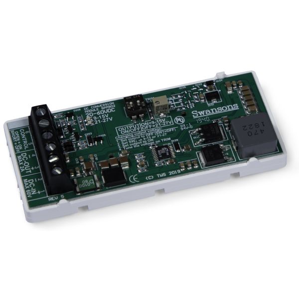 Art.nr: 4015668DC/DC-omformer, 24–60 V innspenning med enten et 12 V- eller et 24 V-område som kan finjusteres med trimpotensiometer. Ideell for bruk i PoE-aggregater for å drive utstyr som ikke er PoE-drevet.