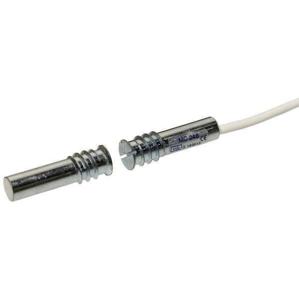Art.nr: 3033768Magnetkontakt i lite format med NC-funksjon som kan brukes i både alarm-og sikkerhetssystem for beskyttelse av dører, grinder og vinduer mot uvedkommende åpning. Laget av metall og utformet som en skrue med gjenger, noe som muliggjør enkel montering i tre eller plast.