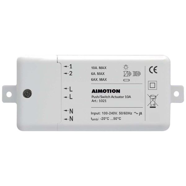 Brytaktuator 1k med potensialfri relé for Casambi-nettverk. Har funksjon for både arbeidsstrøm og impuls. Ferdig i halt form.