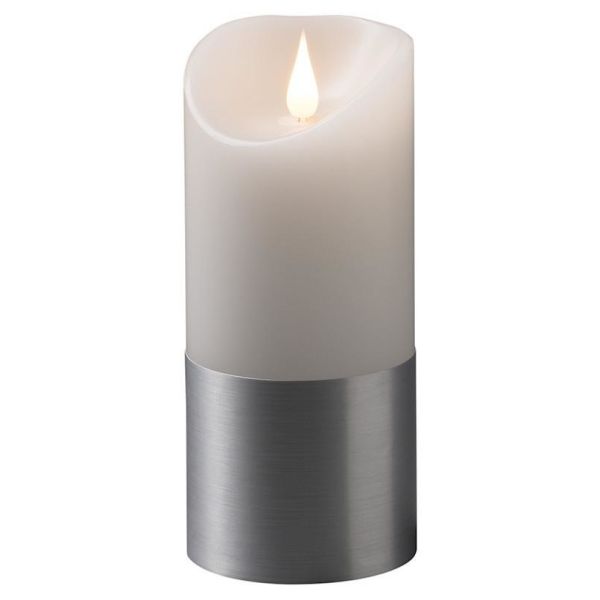 Art.nr: 3134576Konstsmide 1822-300 er et vokslys på 7,5x17,5 cm, hvit med sølvfolie LED-timer 4/8h 2xC.