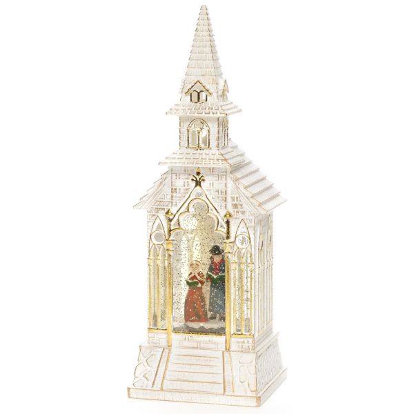 Konstsmide 4366-200 er en vannfylt lykt med kirke, hvit LED. Timer 5t. 3xC.