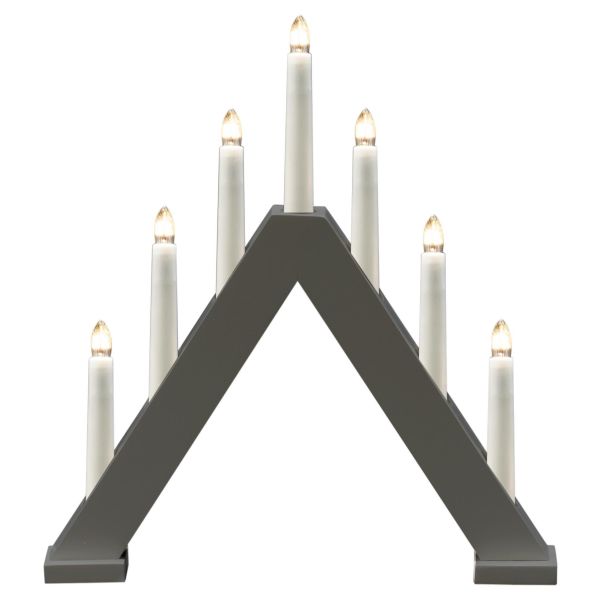 Konstsmide 3930-205 er en elektrisk lysestake med 7 lyspunkter, laget av tre i matt hvit, bryter 230V/IP20.