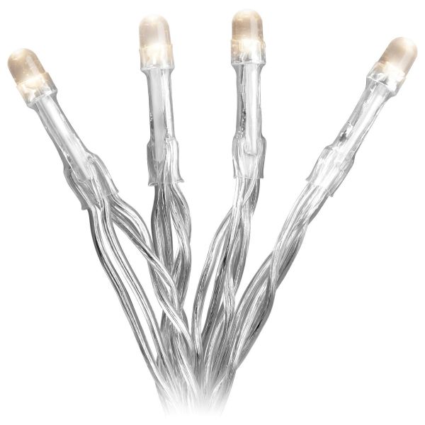 Konstsmide 1469-103 er en slynge med 30 varmhvite lysdioder. Transparent kabel. Timer 6t. 3xAA