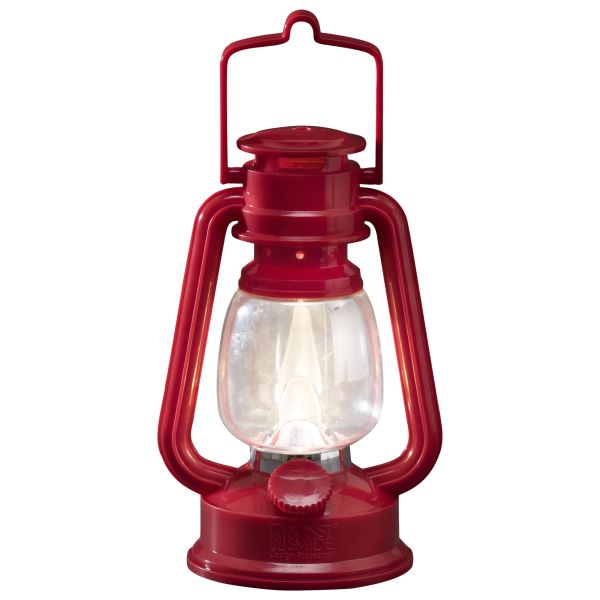 Konstsmide 4129-550 er en enkel lykt som er rød med varmhvit LED. 2xAA.