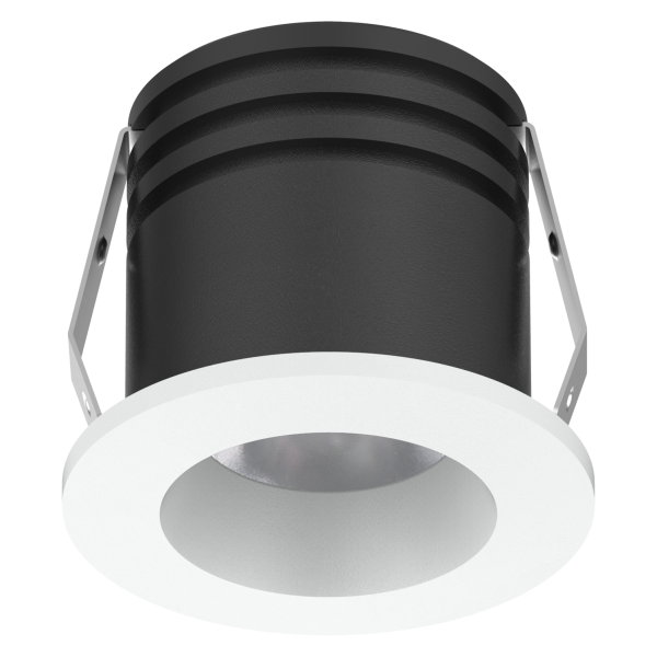 Innfelt downlight i aluminium. LED-brikken er plassert høyt oppe i armaturen for å motvirke blending, og lyset diffunderes ved hjelp av en reflektorlinse. Leveres komplett inkl. driver med 2-polet quick-connect rekkeklemme mellom driver og downlight. Godkjent for installasjon uten luftspalte. Monteres med to fjærklemmer. Godkjent for installasjon uten luftspalte. Egnet for innfelte vindusutsparinger, kjøkken, bad eller som aksentbelysning.
