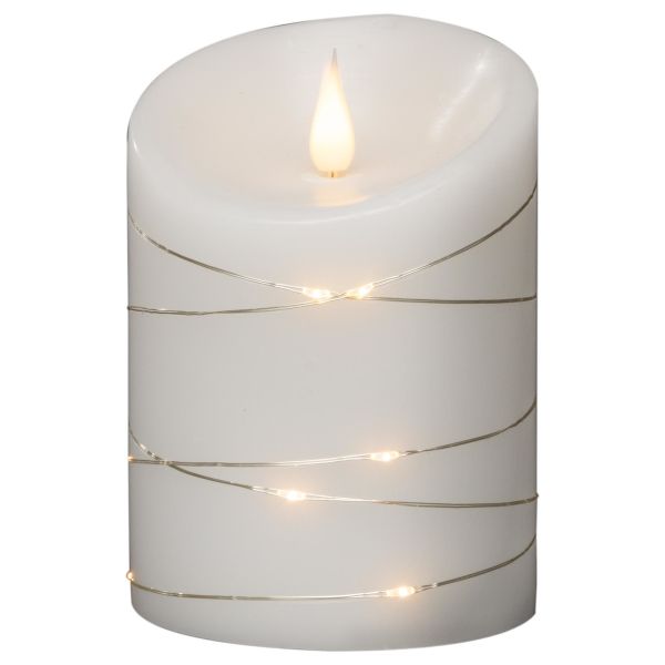 Konstsmide 1844-190 er et vokslys med micro LED 10x14 cm varmhvit med timer 4/8h 2xC.