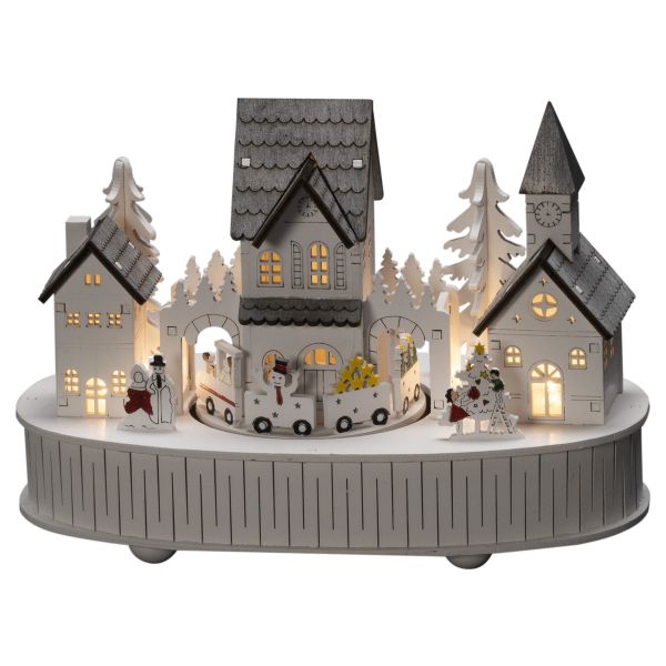 Art.nr: 3118100Konstsmide 3269-210 er en silhuett av hus og kirke, hvit, med 5 varme hvite lysdioder. 2xAA.