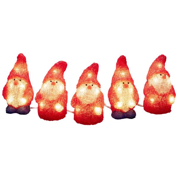 Art.nr: 3134755Konstsmide 6240-103 er 5 små nisser i akryl med 40 varmhvite lysdioder. 24V/IP44.
