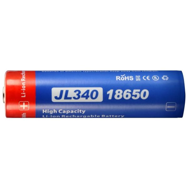 Jetbeam 18650 litiumionbatteri har en nominell spenning på 3,7 V og en kapasitet på 3 400 mAh. Batteriet har innebygd overladesikring og beskyttelseskrets mot dyputlading og overoppheting. Ved lagring over lengre perioder har batteriet lav selvutlading, og det kan lades mer enn 500 ganger.