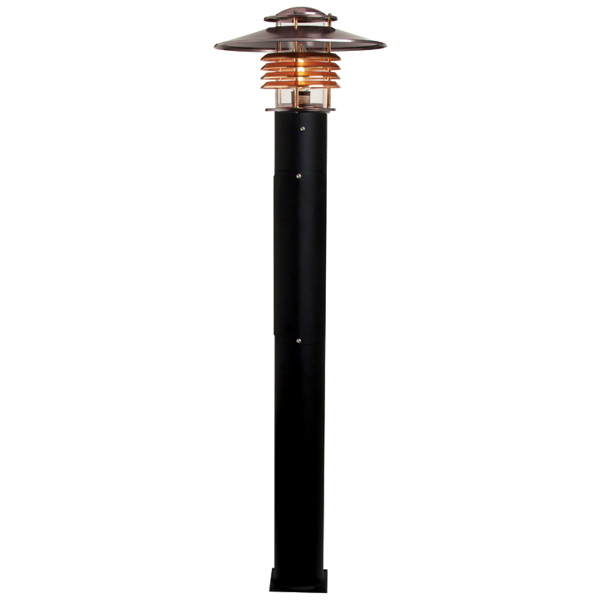 Pullertarmatur med rotasjonssymmetrisk lysmønster. Varmgalvanisert med frostet akrylsylinder. Armaturen har en E27-kontakt på maks 75W. Pullerten har en koblingsluke og fotplate 125x125 mm, tilpasset fast grunn eller for malt jern for innstøping.