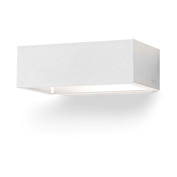 Veggarmatur med opp og nedlys. Anodisert og pulverlakkert aluminiumsramme. Armaturen er utstyrt med en LED-multichip. Fargetemperaturen er varmhvit med et lyst mønster som skinner både opp og ned. Driveren er integrert og bakstykket har to innganger og utganger samt en klemmeblokk med hurtigutløser. Armaturen er IP54 for utendørs bruk, men er også egnet for innendørs bruk. Passer for både private og offentlige miljøer.