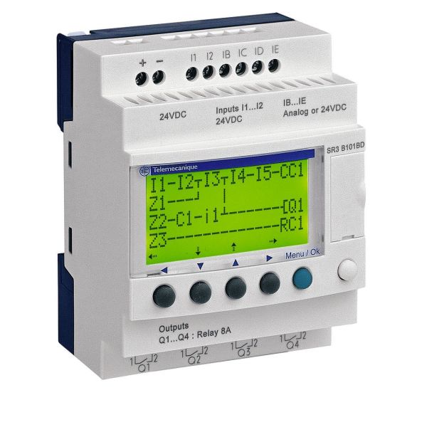 Logikkmodul fra Schneider Electrics Zelio-serie som kan Ladder-programmeringsspråk og FBD. Zelio brukes til automatiseringsutstyr i industri samt kommersielle og offentlige bygg.