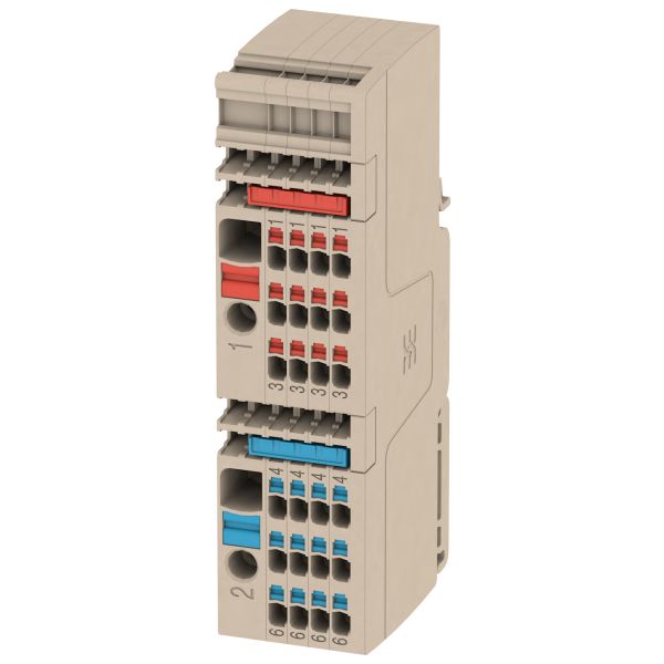 AAP13 6/1.5/12C er en fordelingsblokk for fordeling av styrestrøm. AAP‑potensialfordelingsklemmer er ideelle for overstrømsvern og sentral fordeling av styrestrøm. Blokken har en- og flerpolet klemmerekke samt PUSH IN‑funksjon. Tilkoblingsskinne for skrufesting direkte mot bunnen av kapslingen medfølger.
