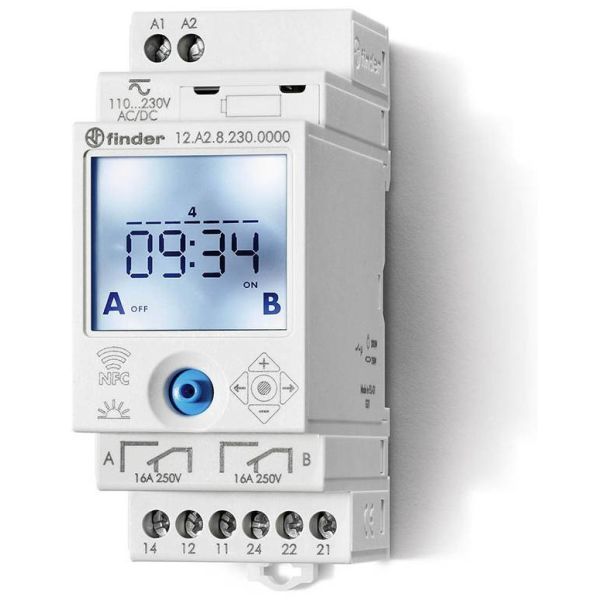 Art.nr: 3084918Astrour med vekslende kontakt 16A 110…230VAC/DC. Programmeres med NFC og/eller Joystick.