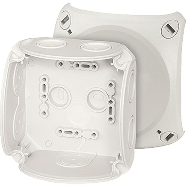Med en kabelinnføring på bunnen, lokkskruene er plomberbare uten tilbehør. Festebånd og utvendige fester for veggfesting følger med
