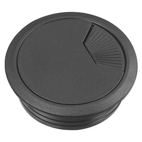 Art.nr: 28110680Lukket kabelgjennomføring for å skape en pent montering når kabler og lignende skal trekkes gjennom en bordplate.