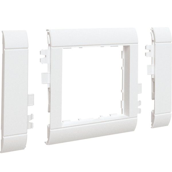 En hvit frontdekkplate i halogenfri utførelse for universell vinduskarmkanal.