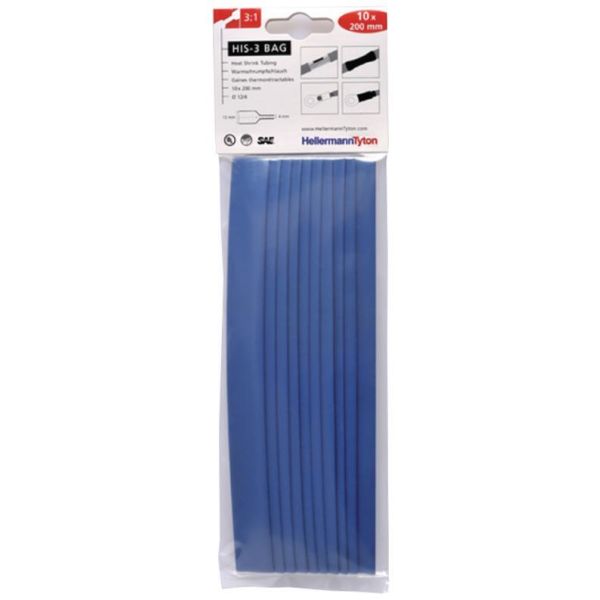 HIS-3 Bag inneholder tynnveggede og fleksible krympeslanger av tverrbundet polyolefin. Kan brukes til isolering og beskyttelse av kabler og kontakter. Slangene har en diameter på 12/4 mm (ukrympet/krympet) og leveres i pakninger med 10 forhåndsklippede biter på 200 mm.