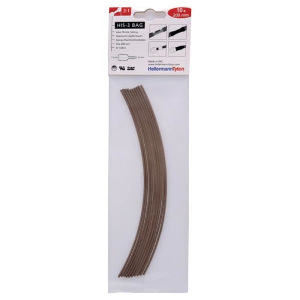 HIS-3 Bag er en 10-pakning med krympeslanger som kan brukes til isolering og beskyttelse av kabler og kontakter. Slangene er tynnveggede og fleksible og produsert av tverrbundet polyolefin. Krympeslangene i HIS-3 Bag har en diameter på 1,5/0,5 mm (ukrympet/krympet) og en lengde på 200 mm. Finnes i forskjellige farger.