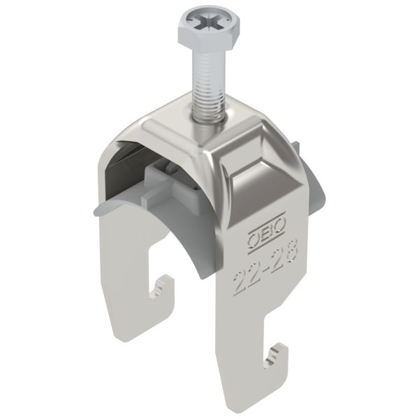 OBO Bettermann kabelholder er beregnet for vertikal og horisontal montering på C‑profilskena og har et fastspenningsområde på 22–28 mm. Klemmen og skruen er fremstilt av rustfritt stål 304 (1.