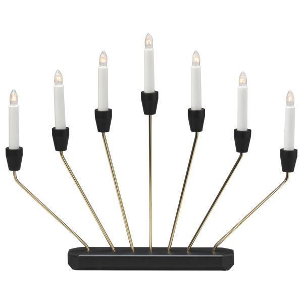 Konstsmide 3539-870TR er en elektrisk lysestake med 7 lys, messing med svart base. 24V/IP20.