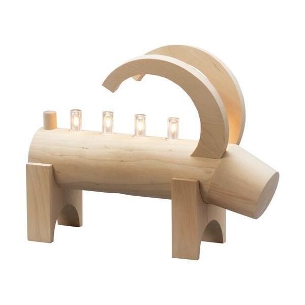 Konstsmide 3981-100TR er en elektrisk lysestake med 5 Led lyspunkter, laget av tre i naturen, julegeit, 24V/IP20.