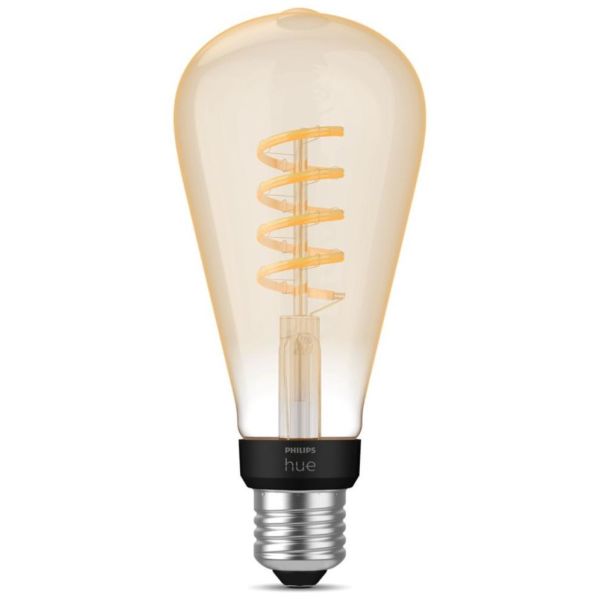 Fang uttrykket til den populære Edison-pæren, med dens karakteristiske lysende innerspole og transparente kuppel/globe, med smarte filamentlyskilder. Disse smarte LED-lyskildene i retrostil kombinerer det enkle vintageuttrykket med kraften og intelligensen i Philips Hue-belysning.
