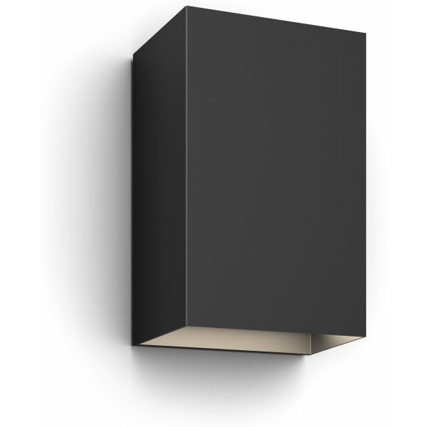 Philips Hue Resonate 915005842901 vegglampe. Den svarte utendørsarmaturen Resonate er robust med et sterkt, klart lys som lyser både oppover og nedover. Den passer perfekt ved inngangsdøren eller plassert rundt huset for å gi optimal lyseffekt. Med hjelp av 16 millioner ulike nyanser av farget lys kan du individuelt bestemme akkurat hvordan huset skal se ut, for eksempel hvilken farge lampene skal ha eller hvor mye du vil dimme dem avhengig av humør eller anledning.