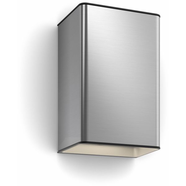 Philips Hue Resonate 915005843001 Vegglampe. Den svarte utendørsarmaturen Resonate er robust med et sterkt, klart lys som lyser både oppover og nedover. Den passer perfekt ved inngangsdøren eller plassert rundt huset for å gi optimal lyseffekt. Med hjelp av 16 millioner ulike nyanser av farget lys kan du selv bestemme nøyaktig hvordan huset skal se ut, for eksempel hvilken farge lampene skal ha eller hvor mye du vil dimme lyset, avhengig av humør eller anledning. Lampene har også IP44-klassifisering, noe som betyr at de tåler rennende vann, og sammen med den lange levetiden gjør dette dem ikke bare til en svært stilren lyskilde, men også til et mer miljøvennlig valg.