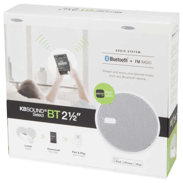 Eissound Select BT 2.5 er et høyttalersett som tillater tilkobling bare med Bluetooth, både for Android og IOS.Kitet inneholder modul med Bluetooth, FM-radio, 2 2,5-tommers høyttalere, antennekabel og høyttalerkabler.Last ned appen KB Sound BT & stream valgfri musikk.Mulighet for slavemoduler for ytterligere høyttaler annet sted.Hver enhet har unik identitet og passord for å unngå forstyrrelser mellom brukere i nærheten.