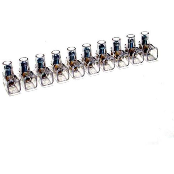 Deksel av transparent polykarbonat (UL94-VO), klemme av messing og skrue av galvanisert stål. Halogenfri. Maks område angis for kobling av to ledere med samme område, 6 mm² innebærer altså at to 6 mm² ledere kan kobles i klemmen. Det er også mulig å koble flere ledere med maksimalt samme område som to ledere med det angitte maksområdet, for 6 mm² gitter altså maks. 8 stk. 1,5mm² eller 4 stk. 2,5 mm².